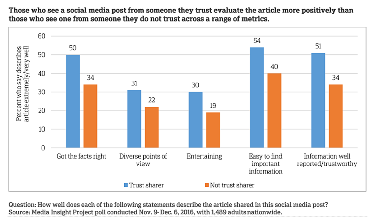 つい数日前に、アメリカン・プレス・インスティテュートとシカゴ大学の広報研究センターが中心となって、どれくらい本気でSNSのニュースを信じているかを調査した「メディア・インサイト・プロジェクト」が発表されました。
